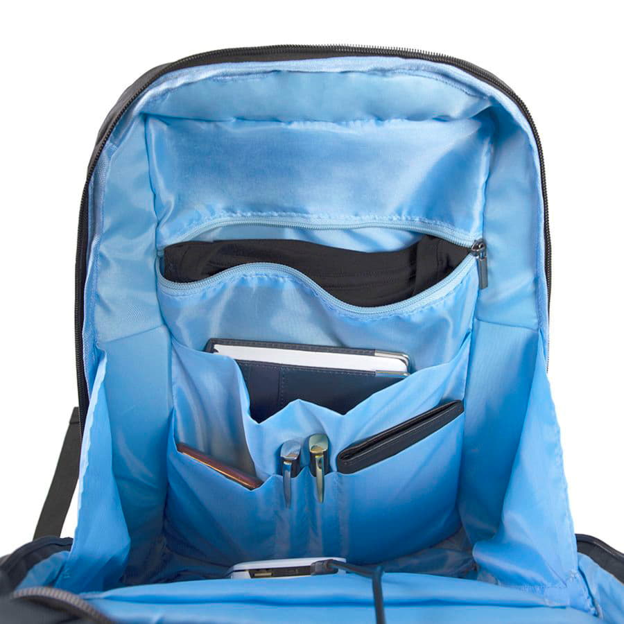 · Основная ткань: 100% полиэстер, подкладка: 100% полиэстер · Объём: 15 литров · Вмещает ноутбук 15,6" Описание: · Сочетание основного прочного водоотталкивающего материала и яркой контрастной подкладки · Жесткий каркас, придающий прочность и дополнительную защиту содержимому рюкзака · Широко открывающийся основной отдел с обратной молнией, защищающей от попадания влаги внутрь и двумя бегунками для удобства открытия · Два вертикальных кармана на молнии для дополнительного хранения · Внешний карман на молнии с брелоком для ключей · Специальный RFID карман с системой защиты от несанкционированного считывания персональных данных · Внутри укрепленный отдел для ноутбука и планшета · USB порт для подзарядки вашего устройства (внутри рюкзака расположен кабель для соединения с power bank) · Удобный карман - органайзер внутри + дополнительный карман на молнии для хранения документов · Специальная стропа на спинке для крепления на выдвижной ручке чемодана · Эргономичная спинка и лямки рюкзака из вентилируемого материала · Укрепленная ручка рюкзака · Карман для проездных карт на лямке рюкзака · Лямки прошиты дополнительными стропами в быстро изнашиваемых местах, которые можно отрегулировать по длине и зафиксировать пластиковыми крепежами · Брендированные металлические пуллеры Bag Fly · Жаккардовый логотип Bag Fly внутри · Картонный ярлык Bag Fly · Внутрь рюкзака вложена сумка из нетканого материала для хранения · Упаковка: прозрачный пакет Пантон близкий к 7545С. -