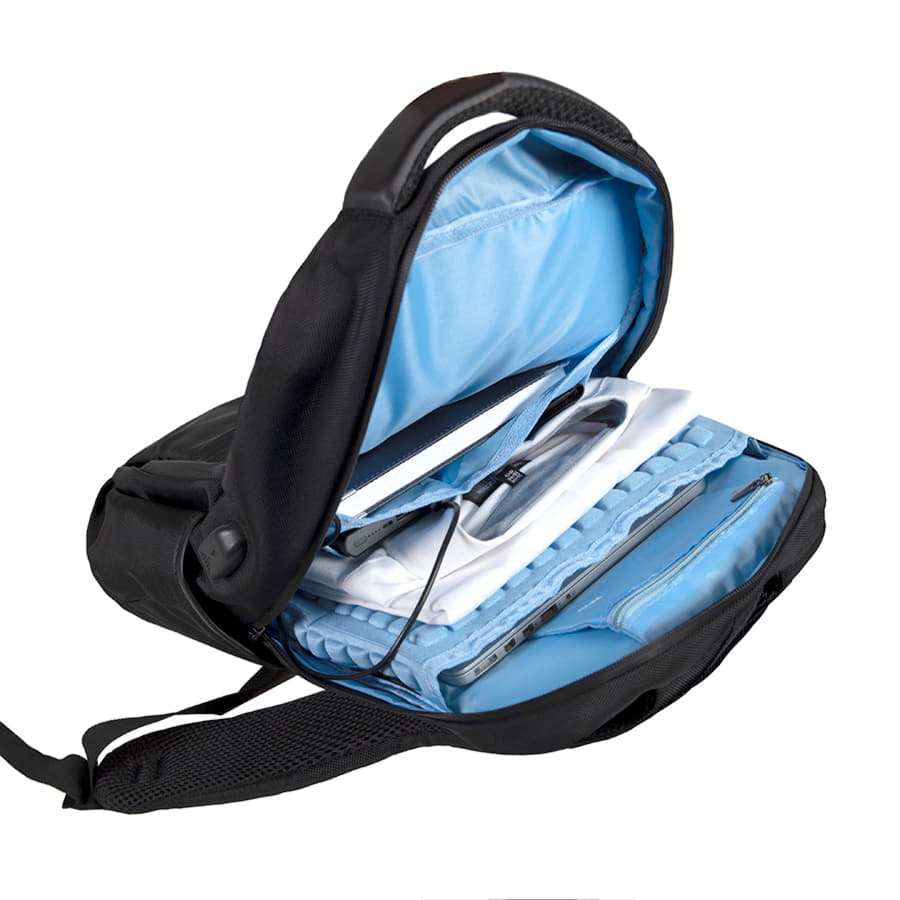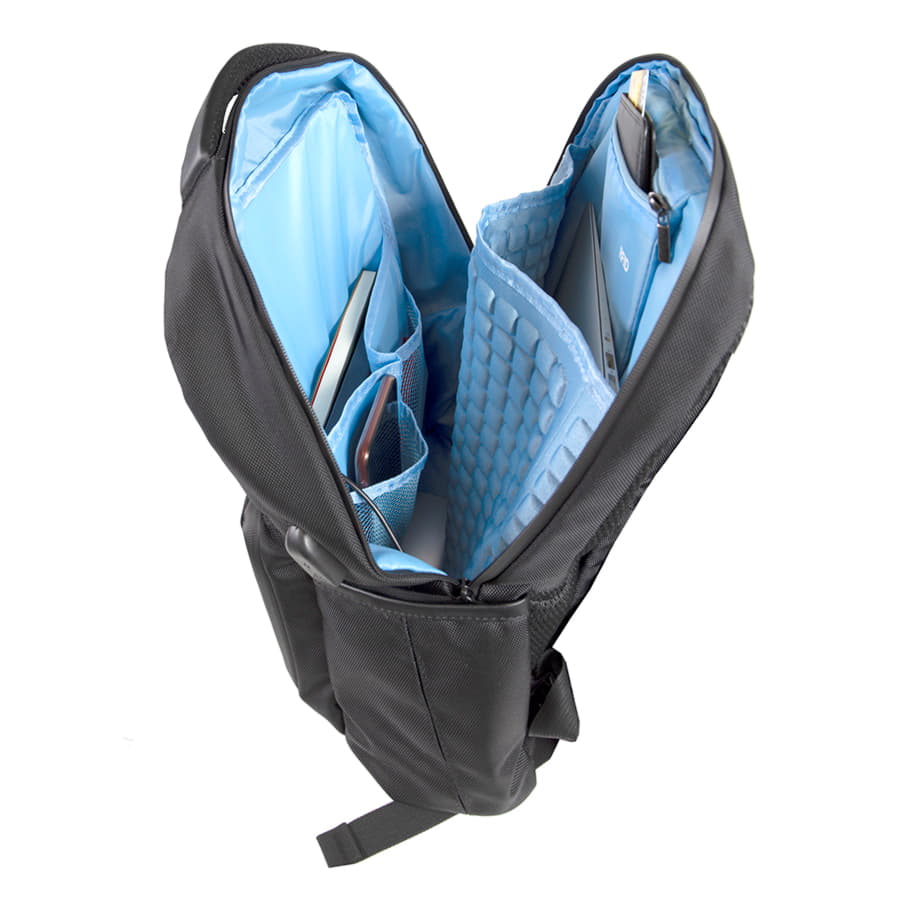 Основная ткань: цвет, близкий к Pantone Black C. · Основная ткань: 100% полиэстер, подкладка: 100% полиэстер · Объём: 19 литров · Вмещает ноутбук 15,6" Описание: · Сочетание основного прочного водоотталкивающего материала и яркой контрастной подкладки · Водонепроницаемые молнии с лазерным кроем · Три дополнительных внешних кармана на молнии · Два боковых кармана · Внутри укрепленный отдел для ноутбука · Специальный RFID карман с системой защиты от несанкционированного считывания персональных данных · Внутренние карманы-сетки и карман-органайзер для дополнительного хранения · USB порт для подзарядки вашего устройства (внутри рюкзака расположен кабель для соединения с power bank) · Силиконовая нашивка для проводов от наушников · Специальная стропа на спинке для крепления на выдвижной ручке чемодана · Эргономичная спинка и лямки рюкзака из вентилируемого материала · Укрепленная ручка рюкзака · Карманы для проездных карт на лямке рюкзака · Светоотражатели на лямках рюкзака для обеспечения безопасности · Лямки прошиты дополнительными стропами в быстро изнашиваемых местах, которые можно отрегулировать по длине и зафиксировать пластиковыми крепежами · Брендированные металлические пуллеры Bag Fly · Жаккардовый логотип Bag Fly внутри · Картонный ярлык Bag Fly · Внутрь рюкзака вложена сумка из нетканого материала для хранения · Упаковка: прозрачный пакет -