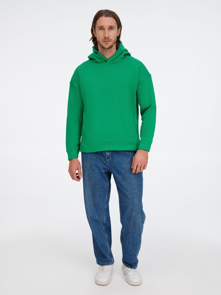 Худи унисекс оверсайз со спущенным плечом и внутренним карманом-кенгуру.- Капюшон на подкладке из основной ткани