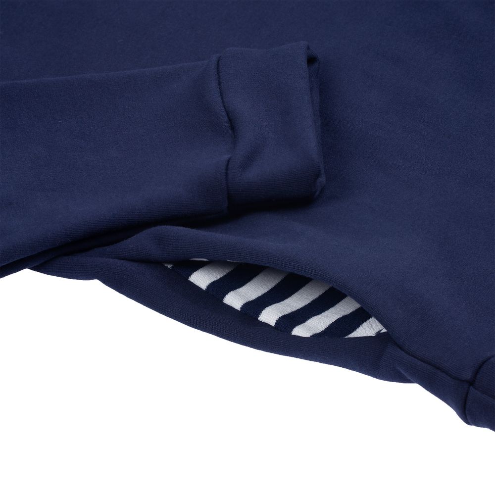 Худи унисекс в морском стиле со спущенным плечом и карманами в боковых швах.- Подкладка капюшона и карманов выполнена из полосатого трикотажа