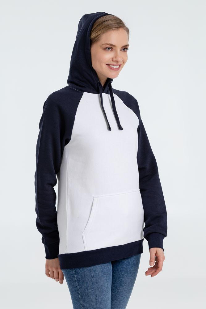 Двухцветная утепленная толстовка унисекс с рукавами реглан и карманом-кенгуру.- Внутренняя сторона с начесом