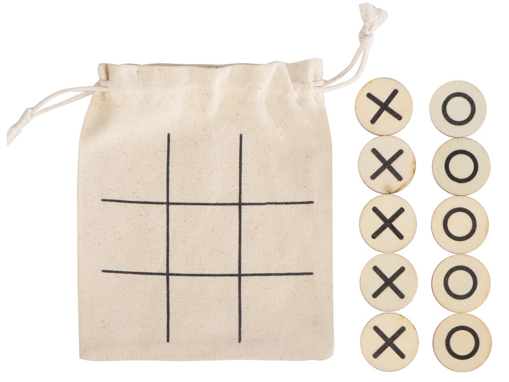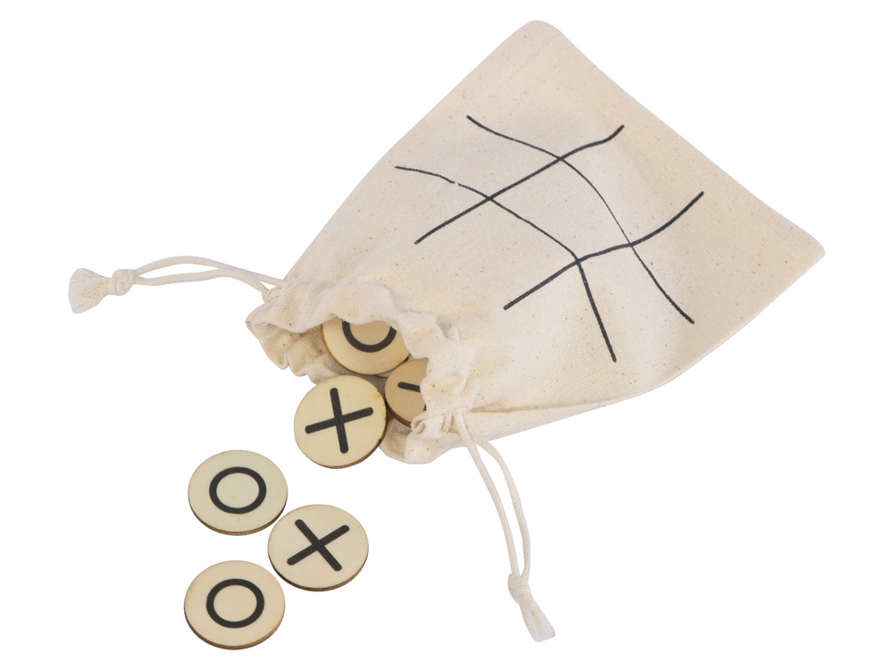 Символы крестиков и ноликов нанесены на небольшие круглые деревянные фишки, а игровым полем служит мешочек, в котором эти фишки хранятся. Благодаря этому игру очень удобно взять с собой, она почти не занимает места и позволит нескучно и с пользой провести время, например, в дороге или на пикнике.