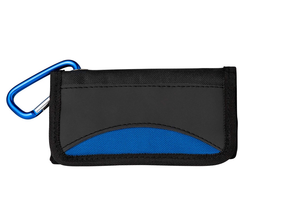 Набор из 19 инструментов. Небольшой складной набор из 19 инструментов с карабином для удобного хранения. Набор включает: 4 головки (7-8-9-10 мм), 1 отвертку для головок, 10 насадок для отвертки, 1 удлинитель и 3 шестигранных ключа (3-4-5 мм). 600D и чехол из ПУ. -