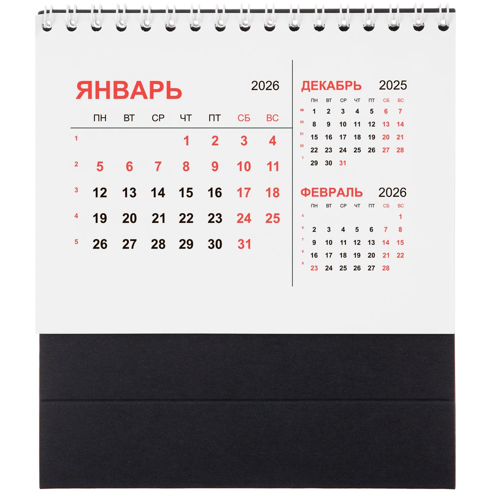 Компактный настольный календарь с датировкой на 2026 год.