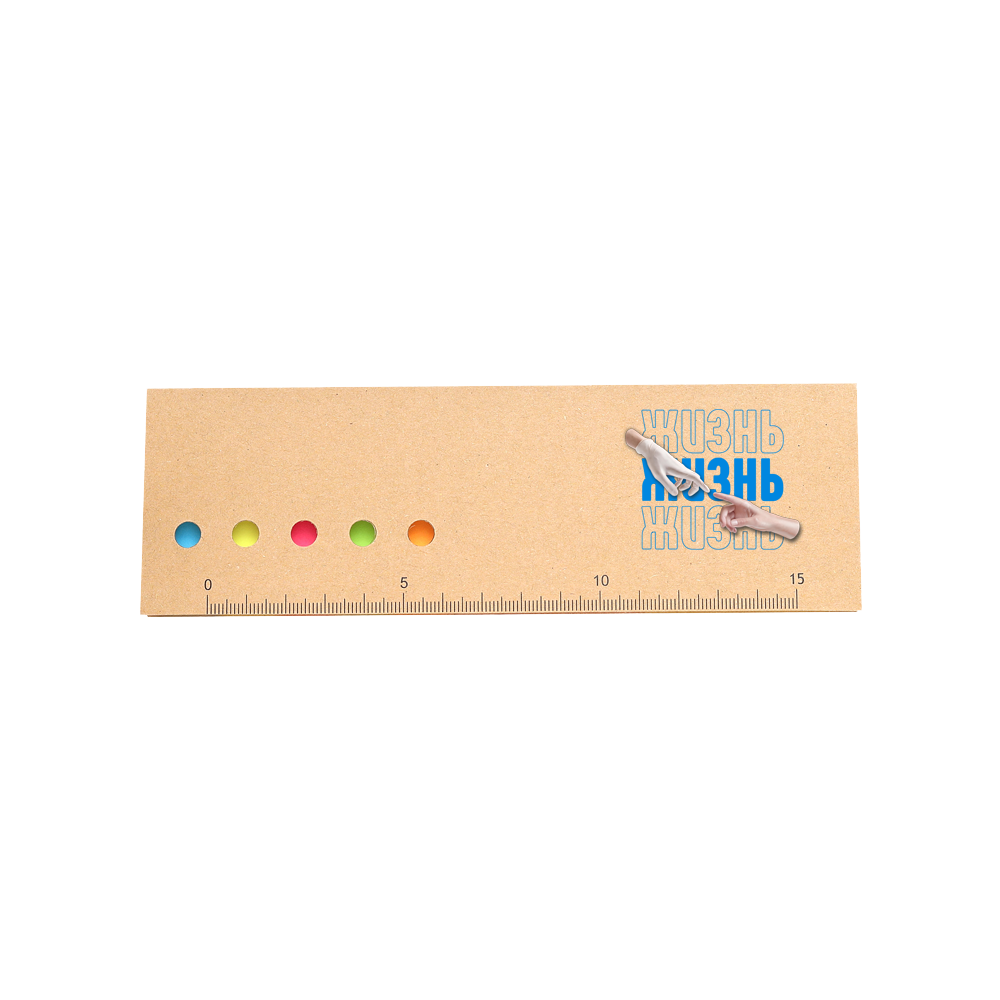 Компактный набор стикеров Liner в бумажном чехле. На чехле нанесена разметка в виде линейки. В наборе несколько размеров в разной цветовой гамме. По 20 клейких стиков для каждого цвета.- Виды нанесений: Тампопечать, УФ-печать