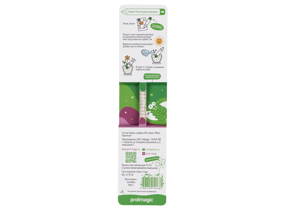 Растущий карандаш сделан из бумаги и на кончике у него желатиновая растворяющаяся капсула с семенами мяты.