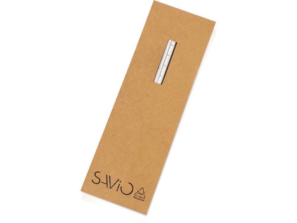 Карандаш изготовлен из переработанного алюминия. В отличие от обычных карандашей его не нужно точить, и он не пачкает руки.