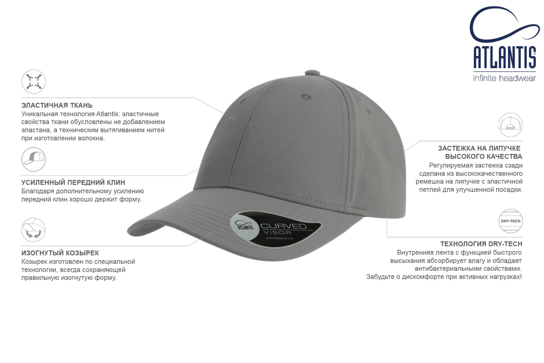 Цвет, близкий к Pantone White Бейсболка из 100% высокотехнологичного дышащего полиэстера предназначена для занятий спортом. - 6 клиньев,- лобовой шов,- 6 вышитых люверсов для лучшей вентиляции,- изогнутый козырек с полной прострочкой, - застёжка-липучка.Эластичные свойства ткани обусловлены не добавлением эластана, а техническим вытягиванием нитей при изготовлении волокна. Внутренняя лента с технологией Dry-Tech – быстрого высыхания абсорбирует влагу и обладает антибактериальными свойствами, что позволит вам забыть о дискомфорте при активных нагрузках. Наша бейсболка названа в честь всемирно известного ямайского легкоатлета Усэйна Болта. Во время своей спортивной карьеры он специализировался в беге на короткие дистанции. На данный момент является восьмикратным олимпийским чемпионом и 11-кратным чемпионом мира, что есть рекорд в истории этих соревнований среди мужчин. Также за время выступлений установил восемь мировых рекордов! За имя и высокую скорость бега получил прозвище «Молниеносный» (англ. Lightning Bolt). Ставьте свои персональные рекорды совместно с бейсболкой BOLT 170 от итальянского бренда Atlantis!58,5 см - средний размер, с помощью застёжки его можно увеличить или уменьшить до необходимого. -