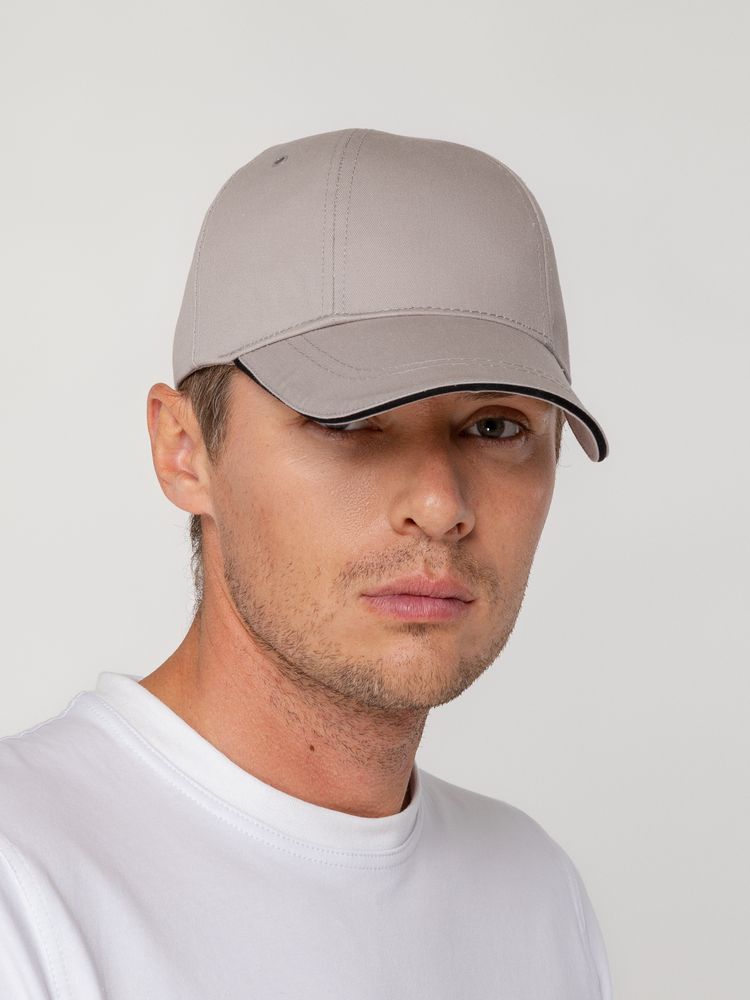 Бейсболка Canopy, серая с черным кантом