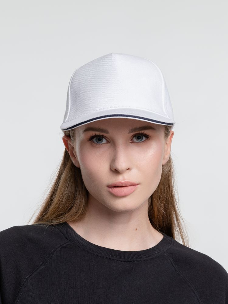 Популярная модель с 5 клиньями без лобового шва выполнена из плотного хлопка.- Козырек-сэндвич с контрастной вставкой