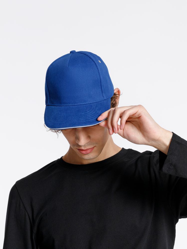 Бейсболка Classic, ярко-синяя с белым кантом