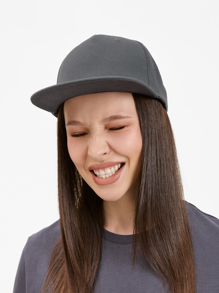 Бейсболка с прямым козырьком из плотного фактурного полиэстера отлично держит форму и не выцветает.- Модель с 5 клиньями без шва на лбу