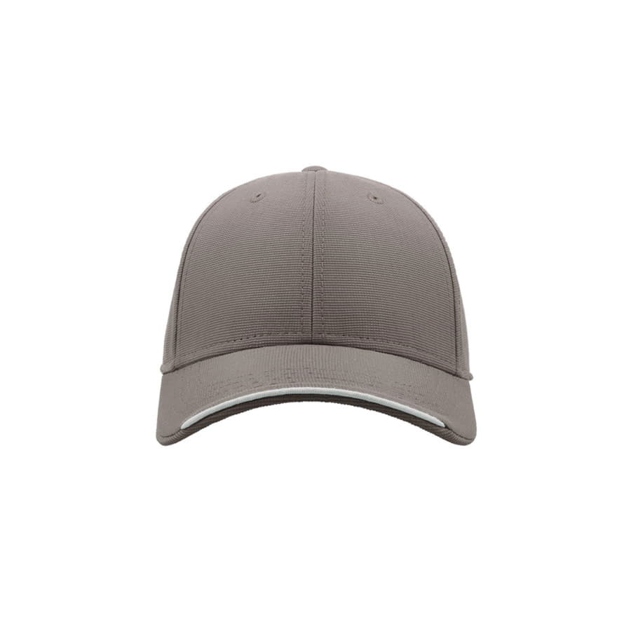 Плотная жаккардовая бейсболка ESTORIL с декоративным кантом по центру козырька. - 6 клиньев,- лобовой шов,- 6 вышитых люверсов для лучшей вентиляции,- изогнутый козырек с полной прострочкой,- контрастный кант в центральной части козырька. - застежка на липучке. Цвет близкий к Pantone 423 C58,5 см - средний размер, с помощью застёжки его можно увеличить или уменьшить до необходимого. -