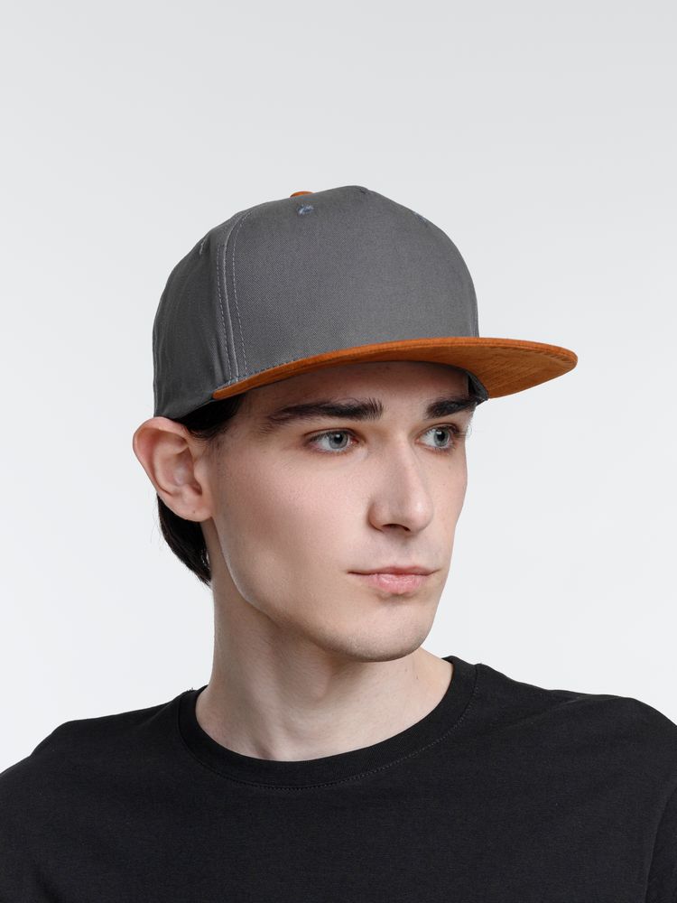 Удобная модель с 5 клиньями без шва на лбу и с обшивными люверсами.- Плотный контрастный прямой козырек из мягкой, приятной на ощупь ткани с велюровым эффектом