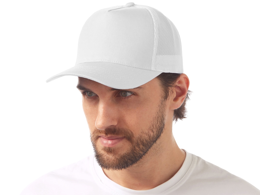 Пяти панельная бейсболка с передней частью из хлопка для комфорта головы и лба. Задняя часть из пластиковой сетки, которая отвечает за циркуляцию воздуха и обеспечивает изделию износостойкость. Для подгонки по размеру головы — пластиковая застежка. -