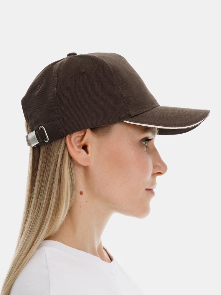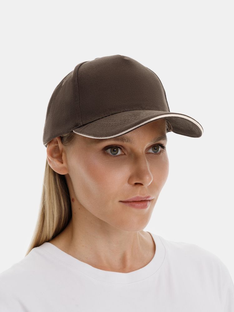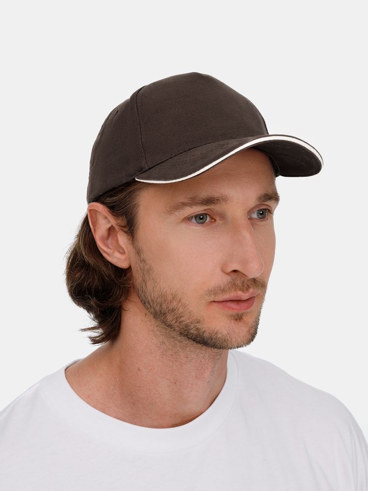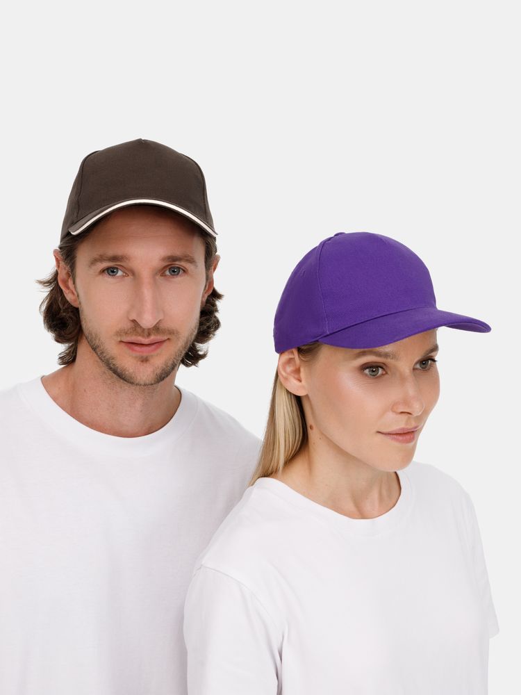 Модель бейсболки с 5-ю клиньями без лобового шва из плотного чесаного хлопка.- Обшивные люверсы