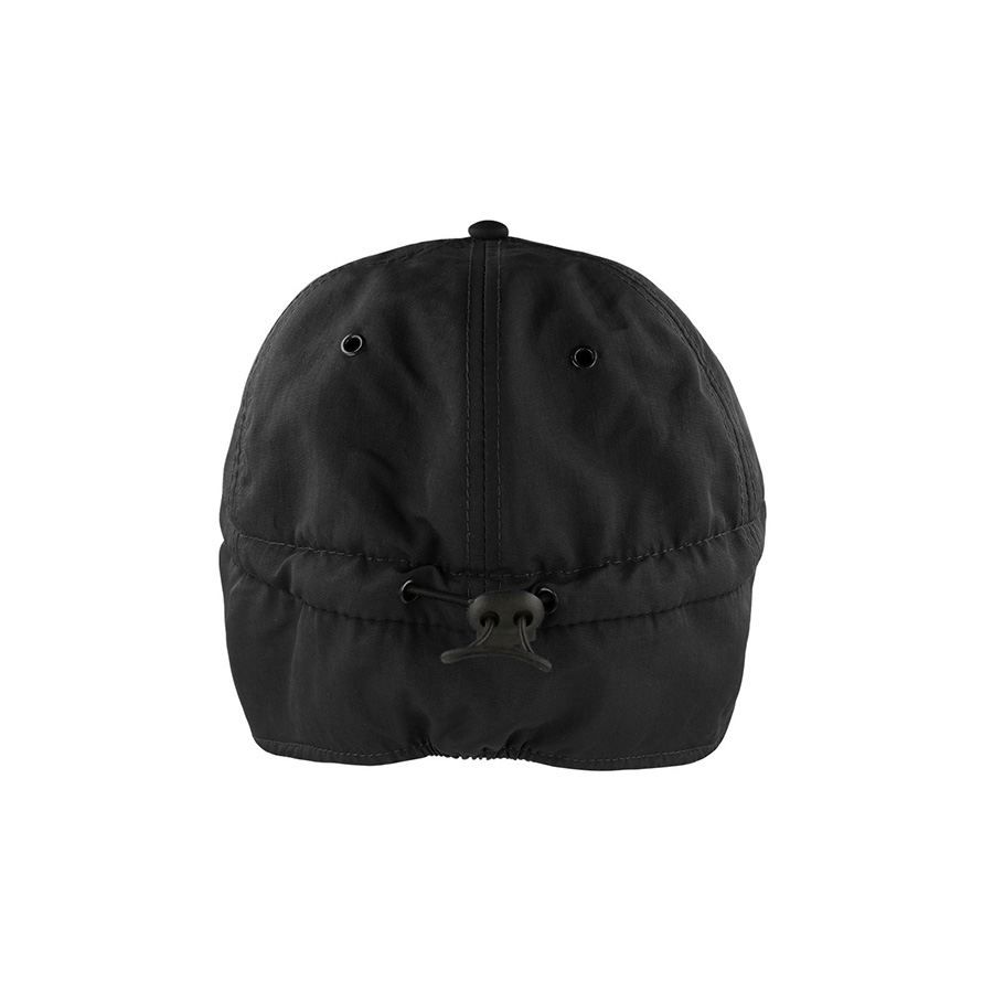 Утеплённая бейсболка с защитным клапаном для ушей и затылка из переработанного нейлона с подкладом из флиса поможет сохранить тепло в холодные дождливые дни. 6 клиньев;6 металлических люверсов в цвет основной ткани;Верхняя ткань обработана водоотталкивающим составом. PFCs FREE- не содержит химических веществ перфторатов ;Шнур-утяжка с пластиковым стоппером на задней части для регулирования размера;Цвет, близкий к Pantone BLACK C58,5 см - средний размер, с помощью застёжки его можно увеличить или уменьшить до необходимого.