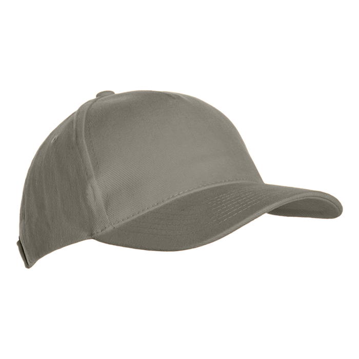 Бейсболка-пятиклинка без лобового шва с изогнутым жестким козырьком. Посадка регулируется ремешком на металлической застежке.