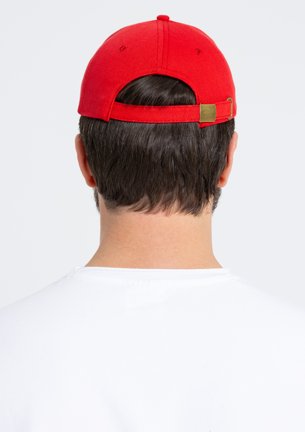 Бейсболка-пятиклинка без лобового шва с изогнутым жестким козырьком и регулируемой металлической застежкой.