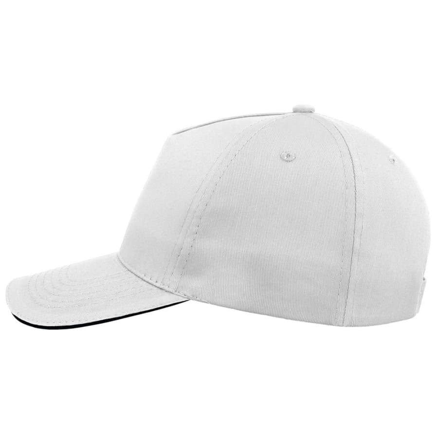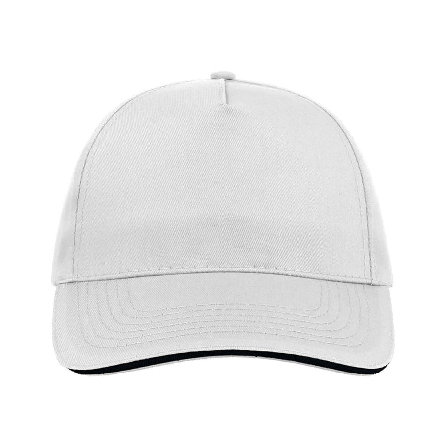 Универсальная легкая бейсболка START FIVE SANDWICH с контрастным кантом на козырьке. Бейсболка имеет универсальный размер и хорошо подойдет для любого промомероприятия. - 5 клиньев, - без лобового шва, - 4 вышитых люверса для лучшей вентиляции, - застёжка на липучке, - изогнутый козырек «сэндвич» с шестью прошитыми рядами. Цвет близкий к Pantone White58,5 см - средний размер, с помощью застёжки его можно увеличить или уменьшить до необходимого. -