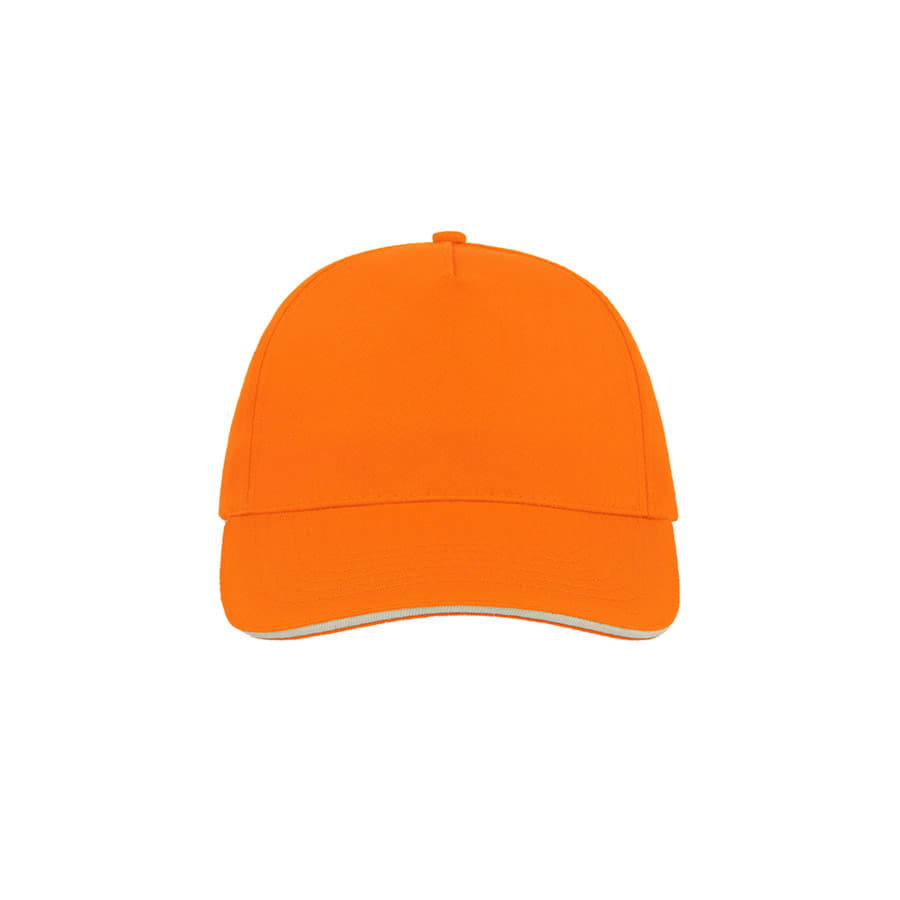 Универсальная легкая бейсболка START FIVE SANDWICH с контрастным кантом на козырьке. Бейсболка имеет универсальный размер и хорошо подойдет для любого промомероприятия. - 5 клиньев, - без лобового шва, - 4 вышитых люверса для лучшей вентиляции, - застёжка на липучке, - изогнутый козырек «сэндвич» с шестью прошитыми рядами. Цвет близкий к Pantone 1575 C58,5 см - средний размер, с помощью застёжки его можно увеличить или уменьшить до необходимого. -