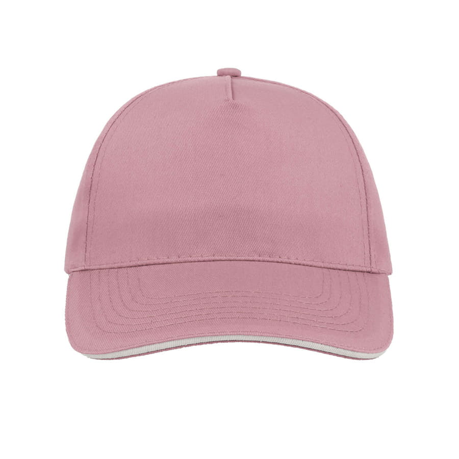Универсальная легкая бейсболка START FIVE SANDWICH с контрастным кантом на козырьке. Бейсболка имеет универсальный размер и хорошо подойдет для любого промомероприятия. - 5 клиньев, - без лобового шва, - 4 вышитых люверса для лучшей вентиляции, - застёжка на липучке, - изогнутый козырек «сэндвич» с шестью прошитыми рядами. Цвет близкий к Pantone 707 C 58,5 см - средний размер, с помощью застёжки его можно увеличить или уменьшить до необходимого. -