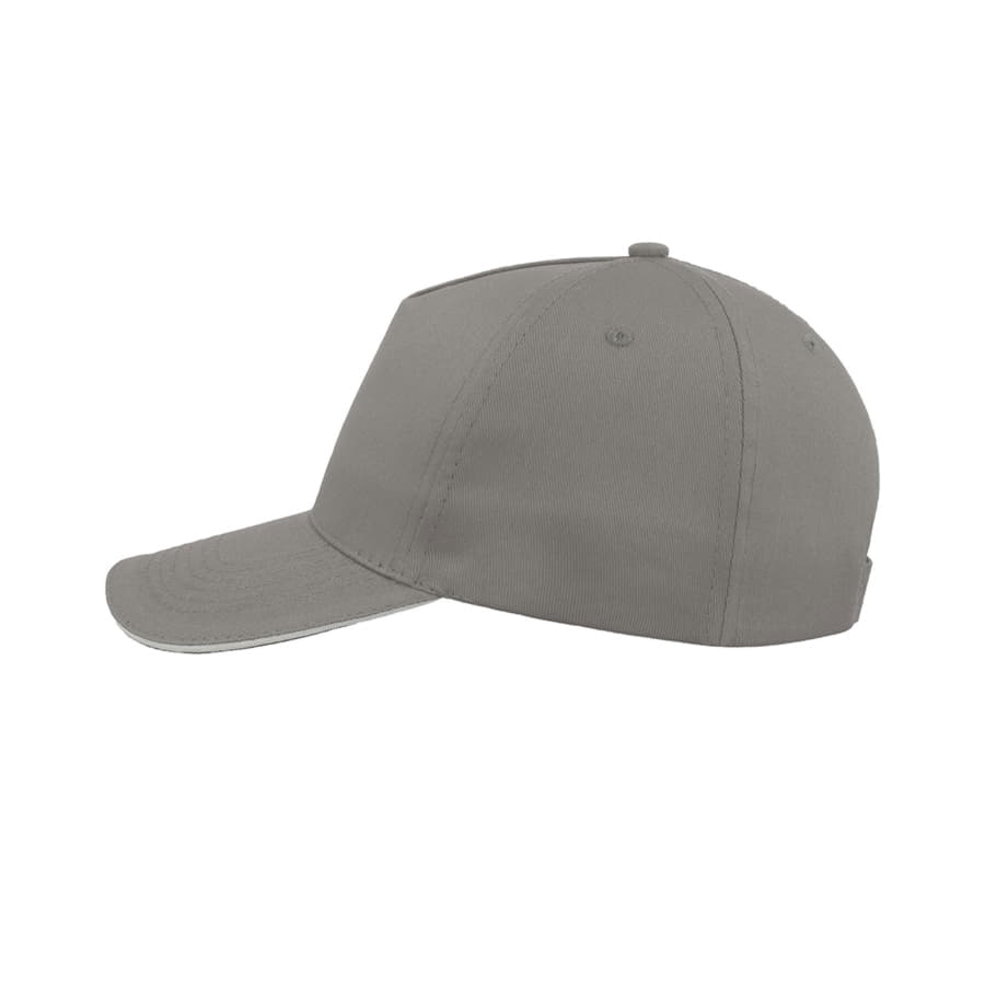 Универсальная легкая бейсболка START FIVE SANDWICH с контрастным кантом на козырьке. Бейсболка имеет универсальный размер и хорошо подойдет для любого промомероприятия. - 5 клиньев, - без лобового шва, - 4 вышитых люверса для лучшей вентиляции, - застёжка на липучке, - изогнутый козырек «сэндвич» с шестью прошитыми рядами. Цвет близкий к Pantone COOL GREY 8 C58,5 см - средний размер, с помощью застёжки его можно увеличить или уменьшить до необходимого. -