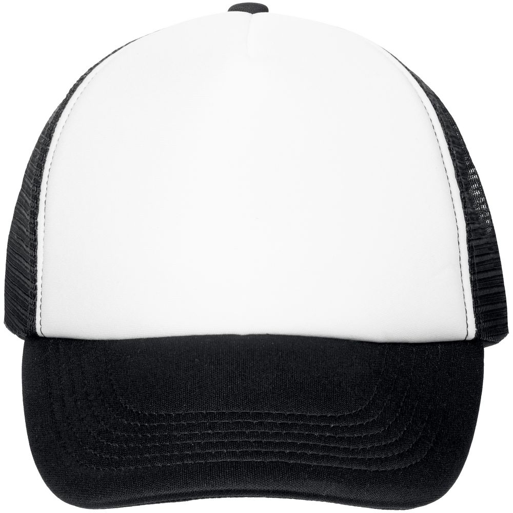 Стандартная модель с 5 клиньями без лобового шва в нестандартном исполнении. Передний клин и козырек выполнены из полиэстера с наполнителем из поролона, боковые и задние клинья — из сетки. Размер регулируется с помощью пластиковой застежки. -