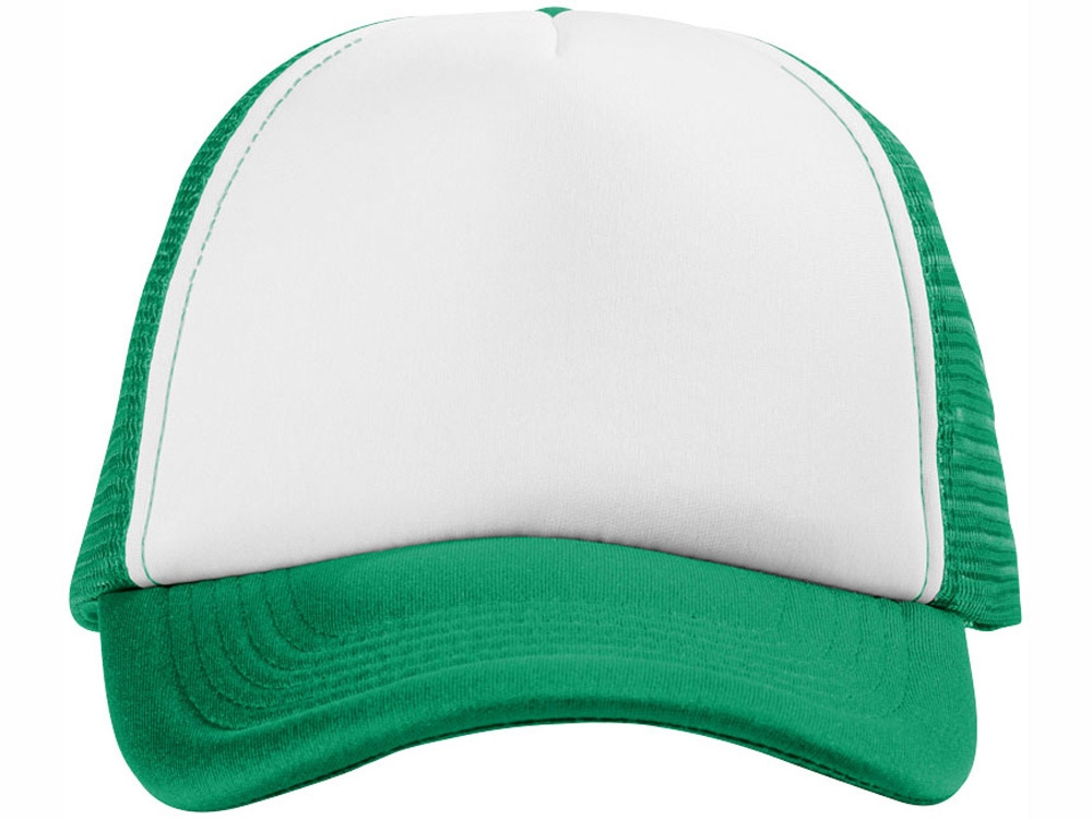 Кепка из 5 панелей Trucker. Оригинальная кепка на окружность головы 58 см с передней поролоновой частью, пластиковой сеткой сзади и пластиковой застежкой. Эта кепка полностью соответствует требованиям к соединениям AZO, формальдегиду и ПХФ. Полиэстер и поролон. -