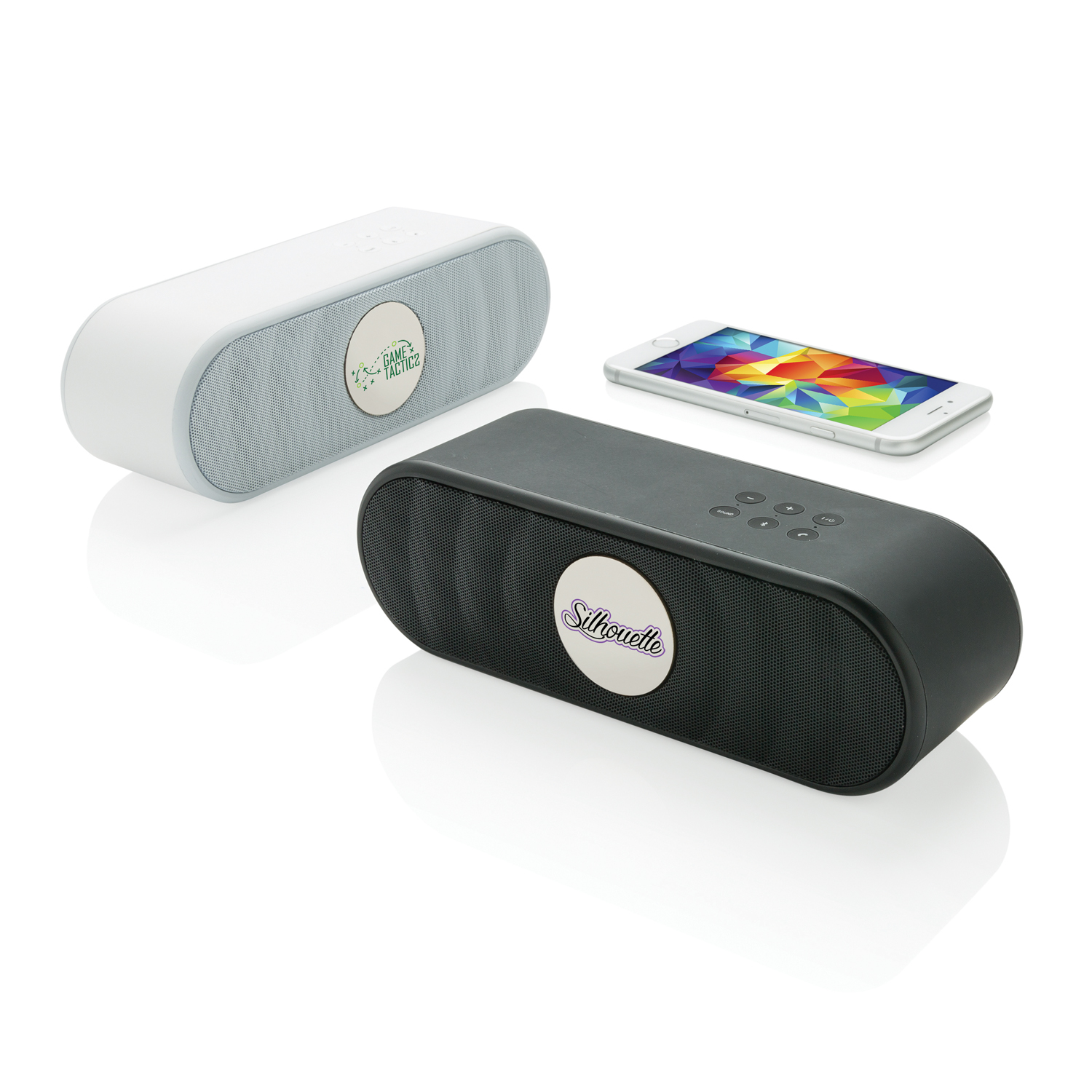 Стильная беспроводная колонка Flow с резиновым напылением порадует не только слух, но и взгляд. На стильном корпусе расположено 6 кнопок: включение / выключение, регулировка громкости, прием звонков и кнопка выбора различных режимов настройки частот. На нижней панели предусмотрены две полосы для хорошего сцепления с поверхностью и отличного качества звука. Встроенного аккумулятора емкостью 1200 мАч хватает на 10 часов работы. На колонке также есть стандартный аудио-разъем jack для подключения к телефону или компьютеру.