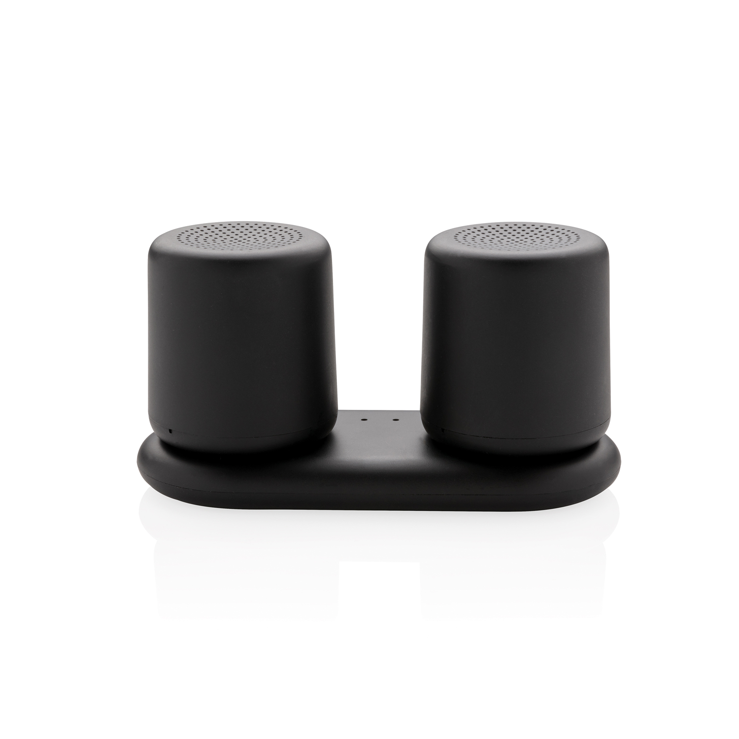 Беспроводные парные колонки с динамиками по 3 Вт каждая порадуют вас не только превосходным звуком, но и легкой зарядкой. Разместите колонки там, где вам больше всего хочется насладиться качественным звуком любимой музыки. Динамики выполнены из прочного ABS-пластика, их легко заряжать, просто разместив на базу для зарядки. Нет необходимости подключать какие-либо провода! Ёмкость каждой колонки 300 мАч, что позволяет им беспрерывно работать до 2 часов. Наличие Bluetooth версии 4.2 обеспечит стабильное подключение на расстоянии до 10 метров. В комплекте идет micro USB кабель длиной 120 см для постоянного питания базы.