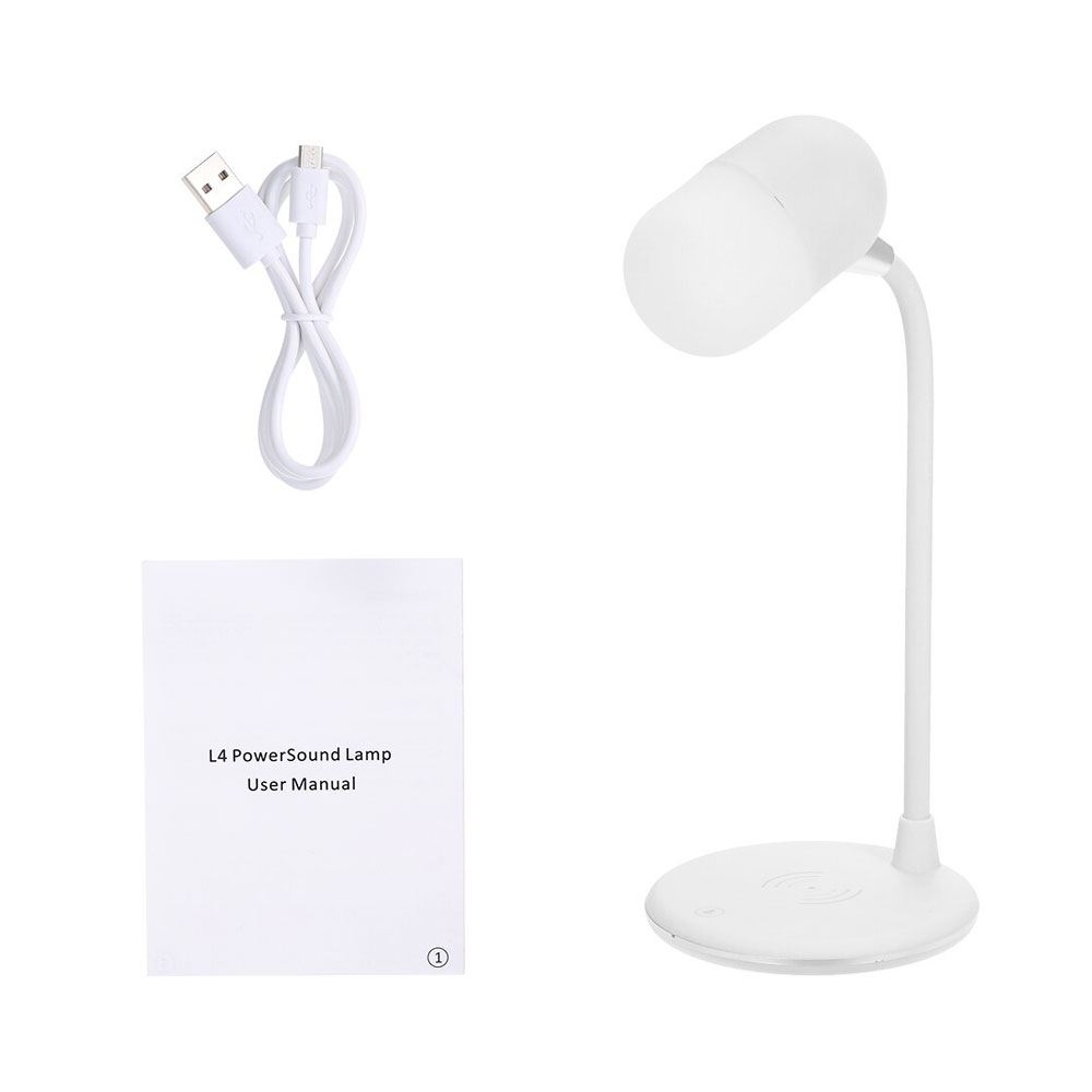 Лампа с колонкой и беспроводной зарядкой Alladin, белая