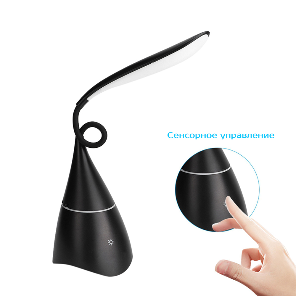 Удивительно эргономичная настольная лампа Swanny порадует стильным дизайном и востребованными функциями. Красота и функциональность найдет свое место на офисном столе или журнальном столике квартиры. LED лампа с возможностью двух режимного освещения – теплый свет и яркий белый не утомляют глаза при длительном ночном чтении. Колонка bluetooth – это отличная опция для любителей музыки, а встроенная батарея позволяет свободно перемещать лампу и колонку. В комплекте кабель USB и инструкция. Тип лампы LED (18 диодов). Цветовая температура 3000-6000К. Мощность лампы: 3 Вт. Мощность колонки ≥ 85db. Bluetooth 4.2. Батарея Li-Ion 1200mAh/3.7V. Вход: 5V/2A/100~240V/50-60HZ.- Виды нанесений: Тампопечать большая, УФ-печать А2