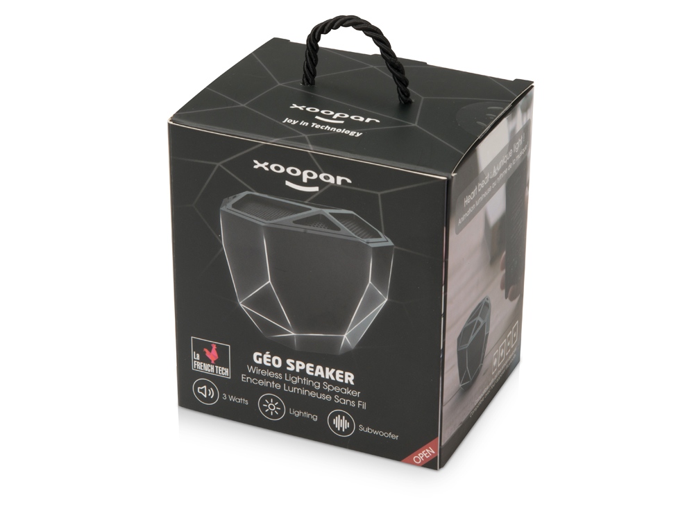 Беспроводная портативная колонка Geo с функцией расширенных басов изготовлена в дизайнерском стиле low-poly. Форма революционного Bluetooth-динамика напоминает мистический кристалл, а подсветка различных цветов (белая, синяя, красная, зеленая, оранжевая) добавляет таинственности. При этом ее яркость зависит от воспроизводимой музыки. Подсветку можно легко поменять, сделав три быстрых нажатия на кнопку включения и произойдет настоящая магия у вас в руках.