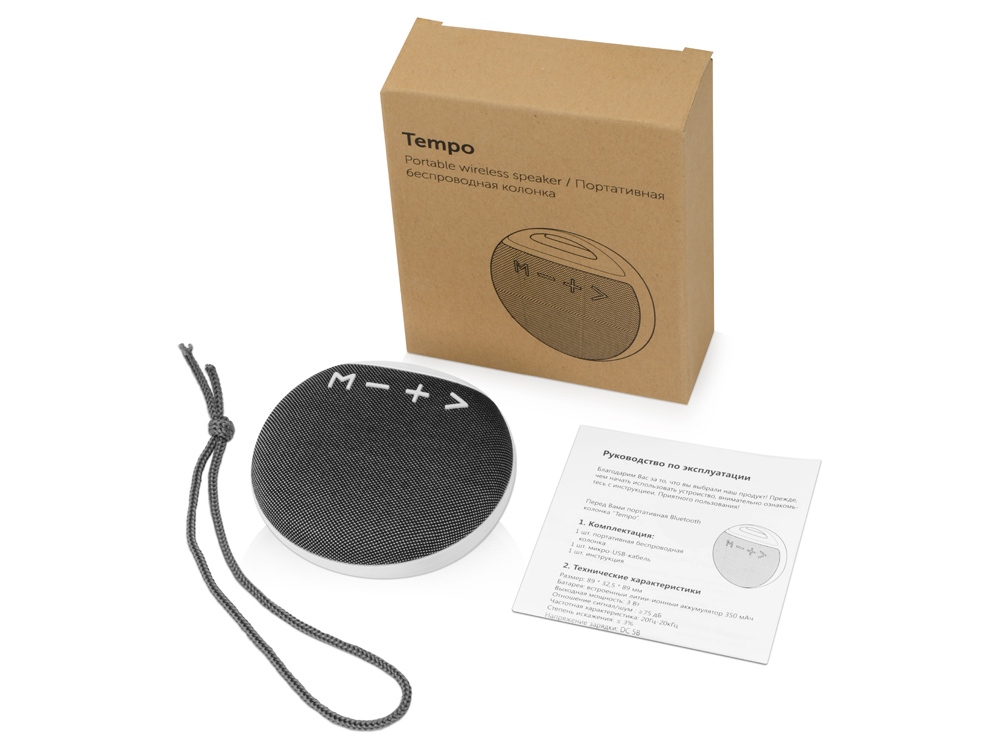 Если вы ищите надежную и стильную портативную колонку, закажите Tempo! Она выигрышно подчеркнет бренд компании с помощью таких методов, как термотрансфер, УФ-печать и тампопечать. У Tempo стильный дизайн, контрастный цвет кнопок и задней крышки, а также удобное крепление для переноски. Колонка обтянута акустической тканью, проигрывает музыку со стандартной USB флешки или micro SD карты. Tempo позволяет принимать звонки и имеет режим радио. -