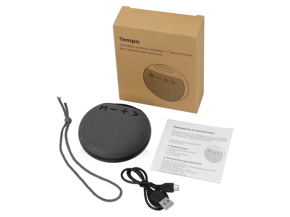 Если вы ищите надежную и стильную портативную колонку, закажите Tempo! Она выигрышно подчеркнет бренд компании с помощью таких методов, как термотрансфер, УФ-печать и тампопечать. У Tempo стильный дизайн, контрастный цвет кнопок и задней крышки, а также удобное крепление для переноски. Колонка обтянута акустической тканью, проигрывает музыку со стандартной USB флешки или micro SD карты. Tempo позволяет принимать звонки и имеет режим радио. -