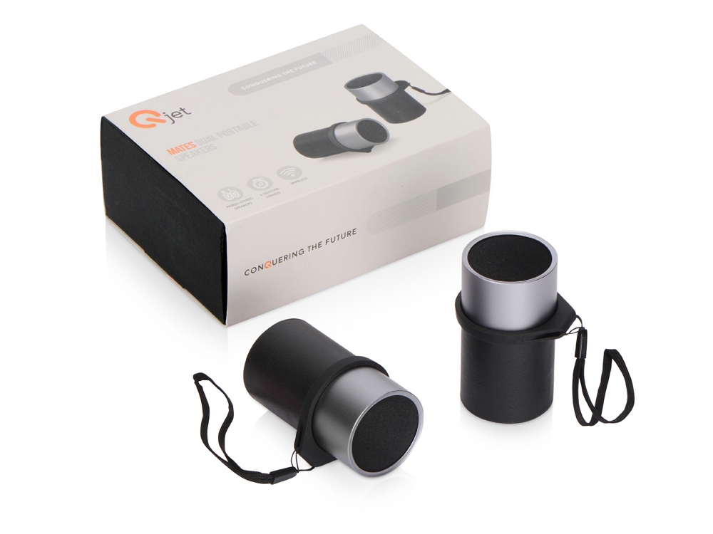 Беспроводные парные колонки Mates от Qjet - это идеальное сочетание качественного звучания и стильного внешнего вида. Колонки поддерживают технологию TWS - это значит, что колонки могут воспроизводить музыку в стерео режиме при подключении к одному устройству. Также вы можете подключать каждую колонку по отдельности. Встроенный аккумулятор на 500 мАч позволяет каждой колонке играть до 4 часов. Колонки притягивают не только взгляд, но и приятны на ощупь, благодаря корпусу из полированного металла и покрытию из искусственной кожи. Динамики декорированы акустической тканью.