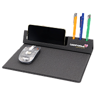 Настольная подставка с беспроводным зарядным устройством, переработанная кожа/бамбук