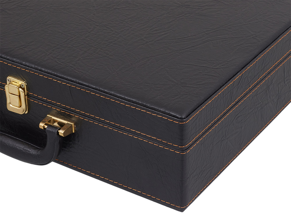 Элегантный дипломат из сплит-кожи с аккуратной строчкой по краям – идеальная упаковка для особенного подарка. Удобная ручка и надежный замочек делают его не только красивым, но и практичным. Внутри достаточно места для презента, который запомнится надолго!