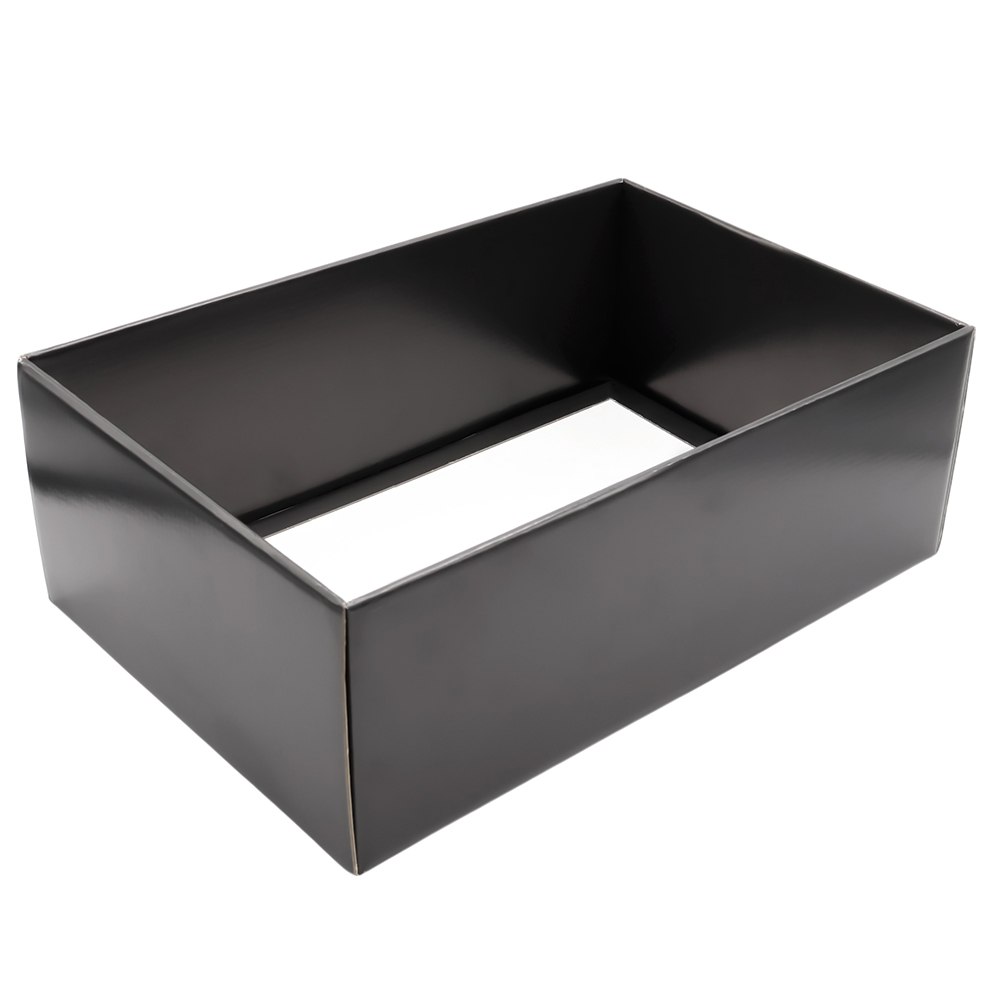 Стильная и функциональная коробка Resolve ипа "Крышка+дно" в классическом черном цвете с глянцевой поверхностью. Внутренние размеры коробки: 355*234*125 мм. Основа коробки - гофрокартон Т23Е. Поставляется в разобранном виде!- Виды нанесений: Шелкография
