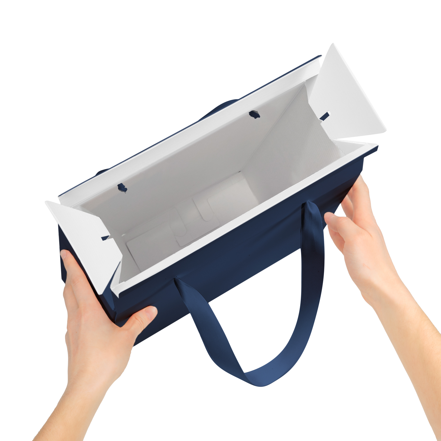 Универсальная подарочная коробка-пакет в большом размере — это идеальное решение для тех, кто ценит как эстетичный внешний вид, так и функциональность. Созданные из микрогофрокартона и кашированного мелованной бумагой, эти коробки отличаются изысканным дизайном и прочностью, что делает их идеальным выбором для упаковки подарков.