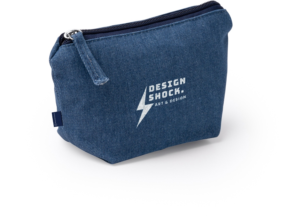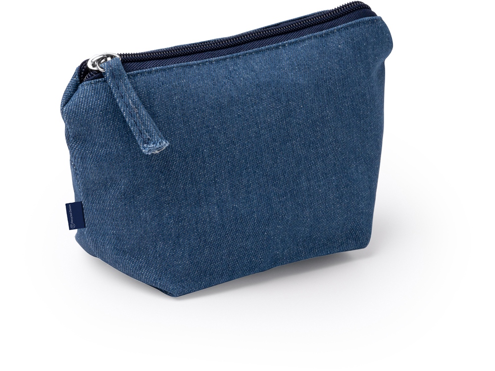 Косметичка из переработанной джинсовой ткани с молнией в тон косметички. -