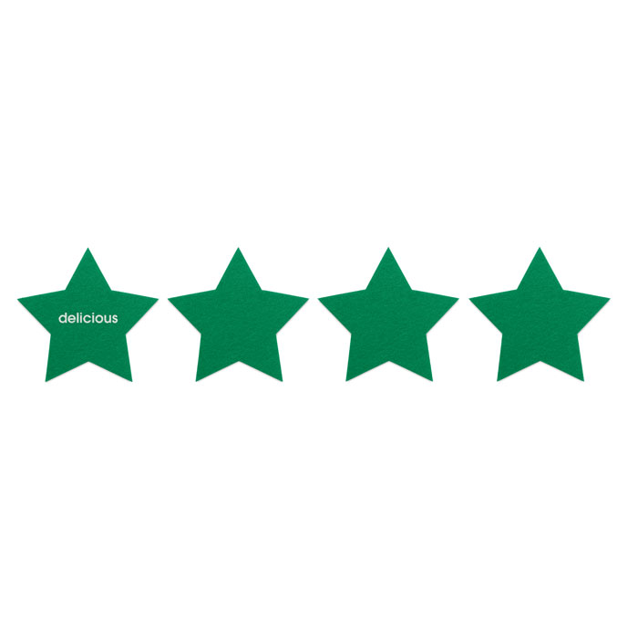 Набор из 4 фетровых (RPET) подставок костеров в форме звезды. Упакован в крафт-коробку -