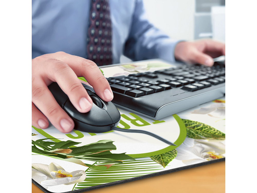 Большой коврик для мышки и клавиатуры, который идеально размещается на столе. Практичный способ брендировать рабочее место и уберечь его от микроцарапин. Гладкое верхне покрытие из микроволокна обеспечивает плавное движение мышки. Резиновая основа и толщина 3 мм не даёт коврику скользить по поверхности стола, дополнительно защищая его от царапин. Изображение наносится на тканевую поверхность, принт размещается в край.