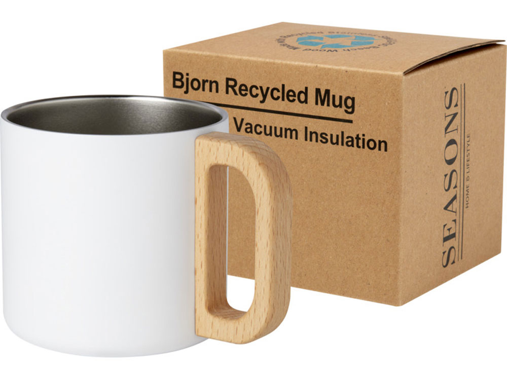 Кружка Bjorn изготовлена из переработанной нержавеющей стали, сертифицированной по стандарту RCS, а ручка изготовлена из древесины бука, полученной из ответственных источников. Медная вакуумная изоляция в кружке помогает поддерживать идеальную температуру напитков в течение длительного периода времени. Эта кружка является отличной альтернативой обычным кружкам и предназначена для предотвращения передачи тепла наружу. Протестировано и одобрено согласно немецкому законодательству о безопасности пищевых продуктов (LFGB) и проверено на содержание фталатов согласно нормам REACH. Емкость: 360 мл. Не содержит БФА. -