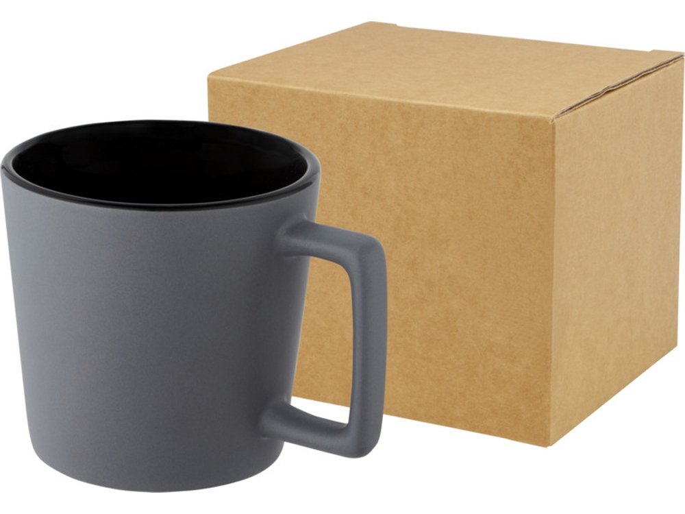 Керамическая кружка с современным дизайном и матовой отделкой. Объем 370 мл. Можно мыть в посудомоечной машине. Поставляется в упаковочной коробке из переработанного картона. Керамика. -