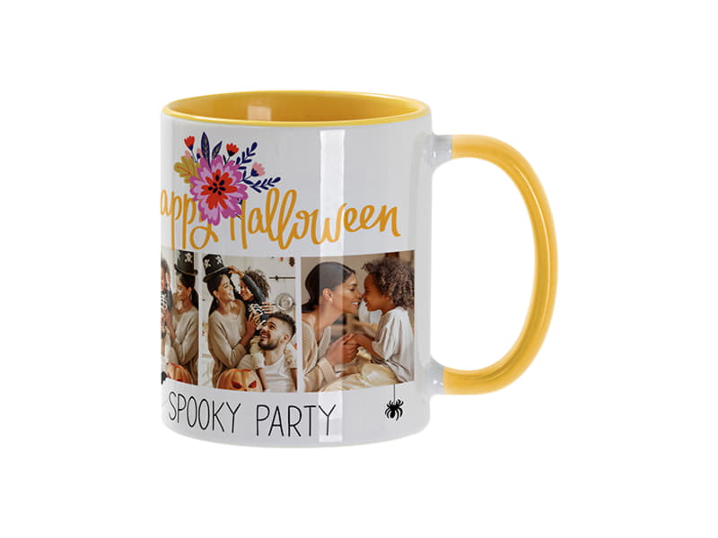 Кружка для сублимации, 330 мл, d=82 мм, стандарт А, белая, желтая внутри, желтая ручка