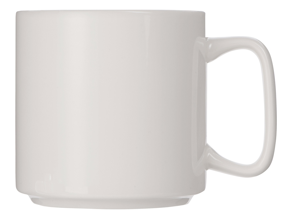 Кружка из костяного фарфора с удобной ручкой прямоугольной формы, которая выделяет ее из множества других белых чашек. Объем — универсальный, угодит любому: 370 мл подойдут и для кофе, и для чая, и тем, кто до последнего откладывает поход на кухню за новой порцией напитка. А еще обратите внимание на донышко: благодаря его форме такие кружки можно ставить одна на другую, что позволит сэкономить место на офисной кухне.