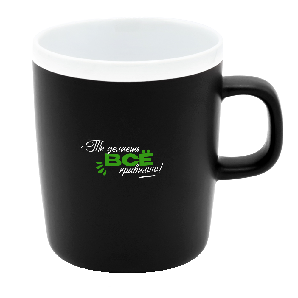 Матовая поверхность с белым глянцевым ободком по краю создаёт контраст и привлекает внимание. Благодаря лаконичной форме и эргономичной ручке кружку удобно держать в руке. Кружка доступна в различных цветах. Подходит для горячих и холодных напитков.- Виды нанесений: УФ-печать А2, Тампопечать большая, Деколь, УФ - DTF, УФ-Лак, УФ-Цвет+Лак