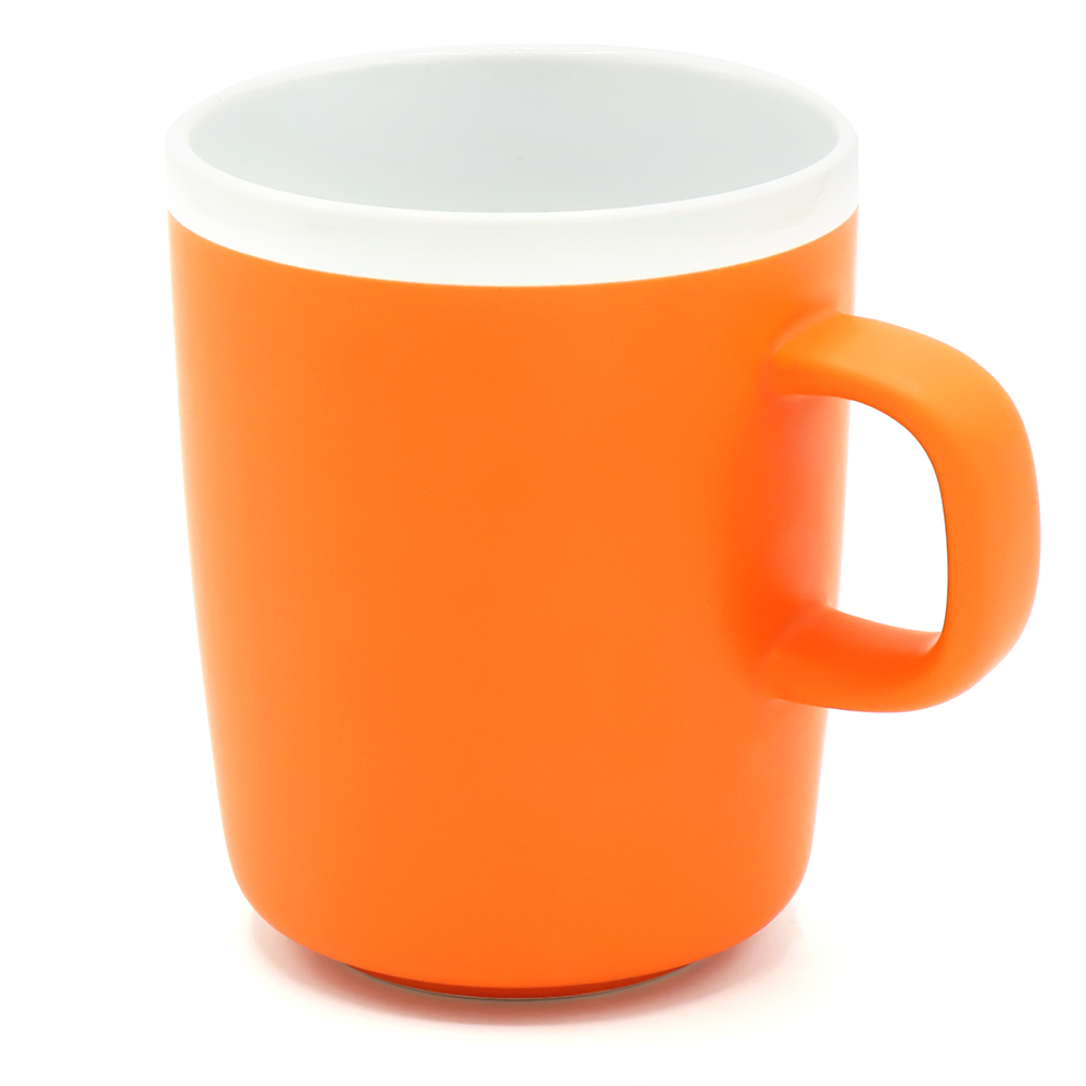 Матовая поверхность с белым глянцевым ободком по краю создаёт контраст и привлекает внимание. Благодаря лаконичной форме и эргономичной ручке кружку удобно держать в руке. Кружка доступна в различных цветах. Подходит для горячих и холодных напитков. Цвет по PANTONE® (максимально приближен):165C- Виды нанесений: УФ-печать А2, Тампопечать большая, Деколь, УФ - DTF, УФ-Лак, УФ-Цвет+Лак